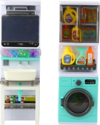 Dieses detailliert gestaltete Set für das heimische Badezimmer bietet alles für ein glaubwürdiges Spiel: Waschbecken mit Spiegel, Frontlader-Waschmaschine, Aufbewahrungsschrank und reichlich Zubehör. Der Spiegel leuchtet nach Einlegen der Batterien, und die Waschmaschine bietet Licht- und Soundeffekte, die das realistische Erlebnis unterstützen.