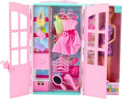 Dieses umfangreich ausgestattete Set begeistert jedes Kind, das Mode und Stil liebt. Der aufklappbare Kleiderschrank mit Regalen verbirgt bunte Kleidchen, praktische Kleiderbügel, passende Schuhe und Handtaschen. Dank Spiegel und Kamm ist die Puppe für jeden Anlass bereit. Das Spiel fördert Fantasie, Feinmotorik und den Sinn für Farb- und Stil-Kombinationen.