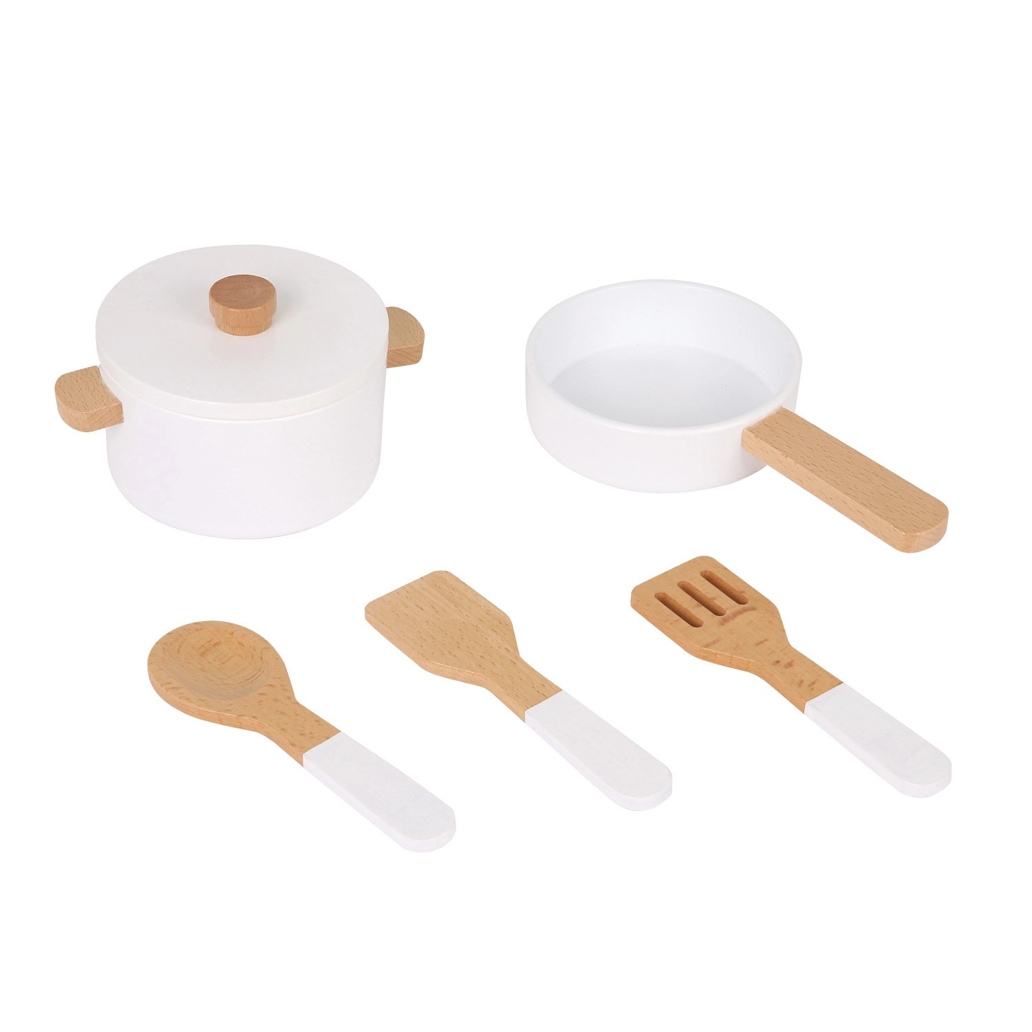 Im Set ist alles enthalten, was kleine Köche benötigen: ein goldenes Spülbecken mit Wasserhahn, ein Kochfeld mit drehbaren Knöpfen, ein Backofen mit transparenten Türen, 3 hölzerne Küchenutensilien, ein Handtuch, Salzstreuer, Pfefferstreuer und zwei Töpfe mit Deckel. Das Material besteht aus 100 % FSC-zertifiziertem Holz für sicheres und nachhaltiges Spielen.