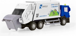 Das realistische Müllabfuhrfahrzeug mit SMOLO-Logo begeistert kleine Technikfans und Sammler. Es bietet eine Metallkabine, eine Kunststoffladefläche mit aufklappbarer Hecktür, einen öffnenden Mülleimer und Rückzugmotor. Die kompakte Länge von 15 cm ist ideal zum Spielen zu Hause und unterwegs.