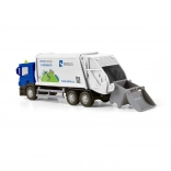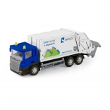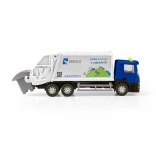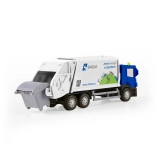 Die Ladefläche verfügt hinten über eine aufklappbare Tür, und im Set ist zudem ein öffnender Mülleimer enthalten, sodass Kinder die Müllabfuhr realistisch nachspielen können. Die kompakte Größe von 15 cm ermöglicht bequemes Tragen und Verstauen.