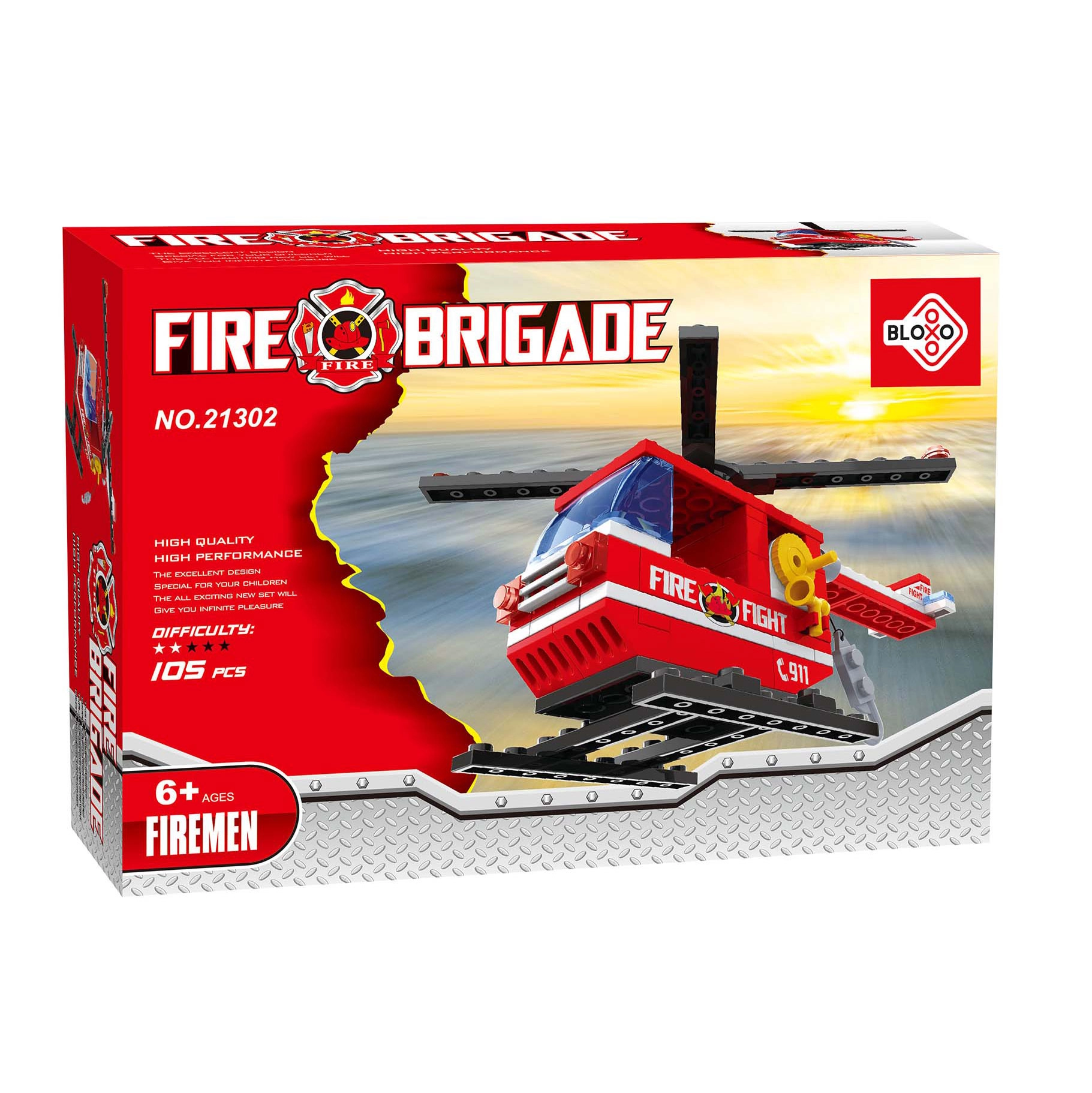 Baue eine actionreiche Szene mit dem BLOXO Feuerwehr – Helikopter und rücke zum Einsatz aus. Kinder haben Spaß am Bauen und anschließenden Spielen, wobei Vorstellungskraft und die Rolle mutiger Rettungskräfte gefördert werden. Die Teile sind für einfaches Zusammenstecken und eine stabile Verbindung konzipiert.