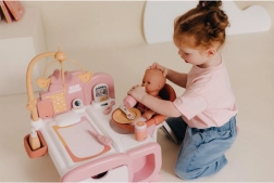 Die elektronische Baby Nurse SMOBY Pflegeecke ist die perfekte Wahl für kleine Pflegerinnen und Pfleger. Drei Spielzonen – Küche mit Fütterungsstuhl, Pflegestation und Bettchen mit Mobile – fördern kreatives Spiel sowie die Entwicklung der Feinmotorik, Empathie und Fantasie. Die integrierte Kameraattrappe und das elektronische Babyfon mit Sound sorgen für ein authentisches Betreuungserlebnis.