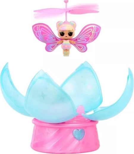 Die magische fliegende Fee L.O.L. Surprise! Flower Child verzaubert jedes Kinderzimmer. Tippe einfach auf das Herz der Blume und die Fee schwebt elegant über die Basis. Das Fliegen ist intuitiv – die Fee reagiert auf Handbewegungen oder ein leichtes Schwenken mit dem beiliegenden Zauberstab.