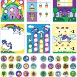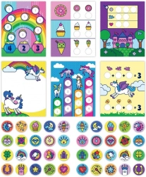 Das Sticker-Set mit dem magischen Einhorn-Motiv fördert Feinmotorik, Vorstellungskraft und Geduld. Dank des praktischen Spenders können Kinder die Aufkleber leicht entnehmen und auf die markierten Stellen der Bildbögen kleben. Die Aufkleber sind wiederverwendbar, sodass der Spaß lange anhält.