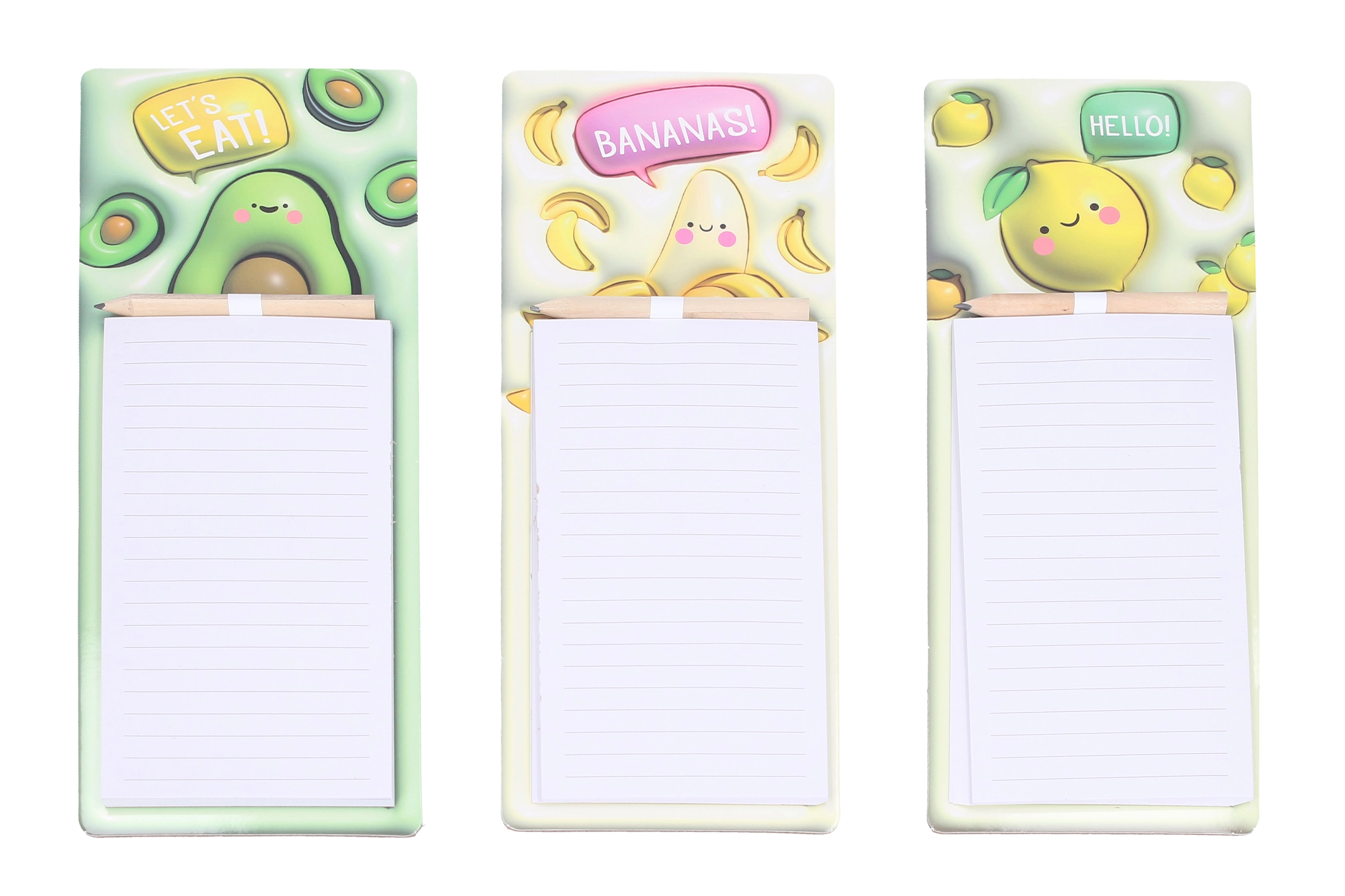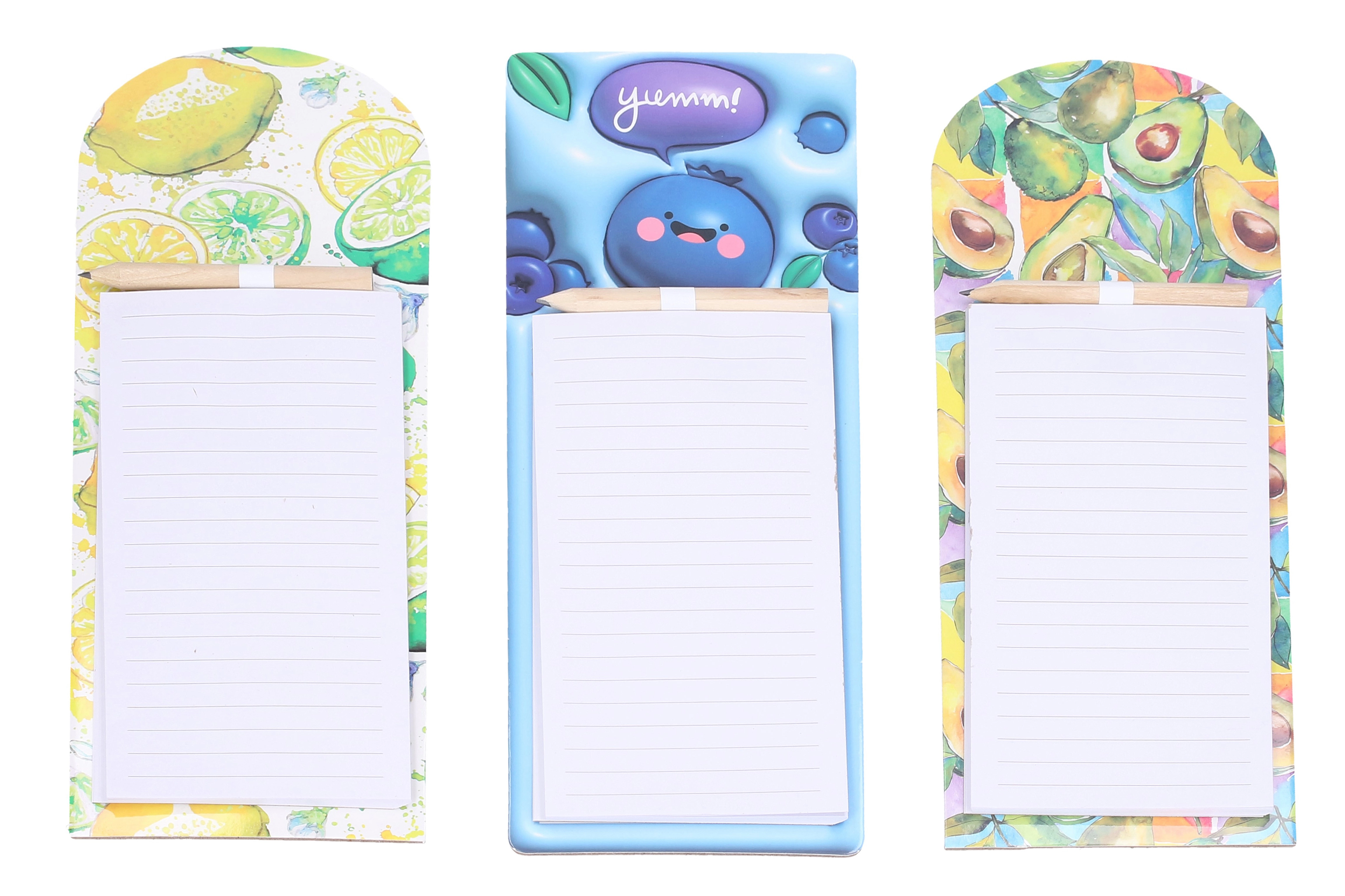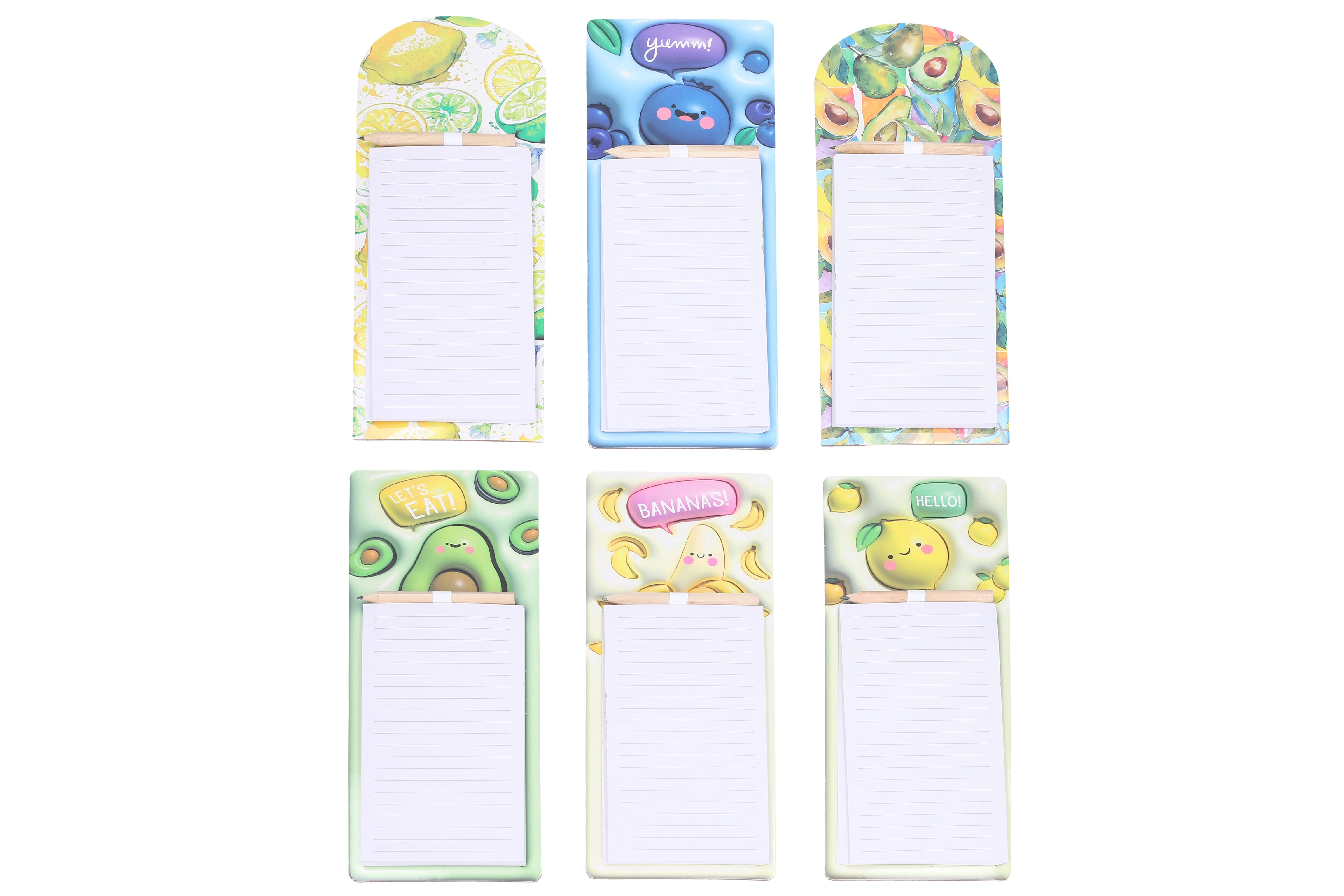 Bringen Sie Ordnung in Einkäufe und tägliche Aufgaben mit magnetischen Blöcken in fröhlichen Obstmotiven. Dank des starken Magneten lassen sie sich leicht am Kühlschrank oder anderen Metallflächen befestigen und sind so immer zur Hand. Inbegriffen ist ein praktischer Bleistift, der oben fixiert ist, damit Sie jederzeit ohne Suchen schreiben können.