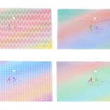 Wählen Sie aus mehreren attraktiven Pastell-Designs – Punkte, Gitter, Crackle-Effekt oder geometrische Formen. Das halbtransparente Material erleichtert die Identifizierung des Inhalts, einige Varianten verfügen zudem über ein Beschriftungsfenster. Das Maß 33 × 23 cm fasst bequem das Format A4 sowie lose Blätter, Hefte oder dünne Kataloge.