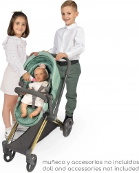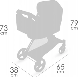 Ein praktisches Konzept mit verstellbarem Verdeck, Dreipunktgurt für sicheres Anschnallen der Puppe und geräumigem Unterkorb. Der Wagen lässt sich schnell für Lagerung und Transport im Auto zusammenklappen. Im Lieferumfang enthalten ist eine elegante, abnehmbare Tasche in den Farben der Kollektion.