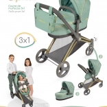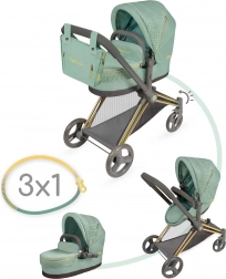 Dieser stylische Puppenwagen überzeugt durch die Kombination aus modernem mintgrünem Stoff und dekorativen Details einschließlich goldfarbener Elemente. Dank der durchdachten Konstruktion verwandeln Sie ihn im Nu von der Babywanne zur Sportversion und zurück. Der höhere Schiebegriff (73 cm) sorgt für komfortables Fahren auch für Vorschulkinder.
