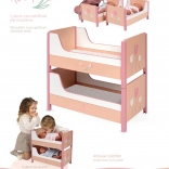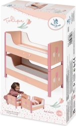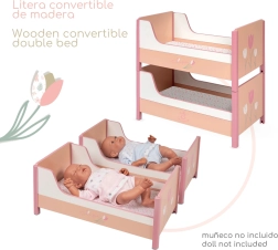 Schenken Sie Kindern eine wunderschöne Bühne für ihre Lieblingspuppen. Das 2-in-1-Bett aus der Tulipe-Kollektion in warmen Lachstönen mit stilvollem Blumenmuster bietet sowohl Etagen-Schlafplätze als auch die Möglichkeit, es in zwei einzelne Betten zu zerlegen. Präzises spanisches Design und eine robuste Konstruktion aus MDF und Massivholz sorgen für lange Haltbarkeit und sicheres Spielen.