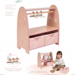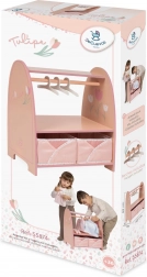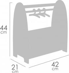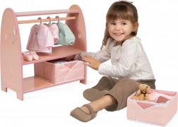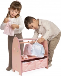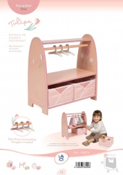 Schenken Sie Kindern Ordnung in der Puppenwelt. Dieser kompakte Holz-Kleiderständer aus der TULIPE-Kollektion bietet eine praktische Lösung zum Aufhängen und Verstauen von Outfits und Accessoires. Die Garderobenstange mit 3 Holzkleiderbügeln fasst Kleidungsstücke bis ca. 19 cm Länge, das untere Regal und 2 faltbare Stoffkörbchen halten alles Weitere griffbereit.