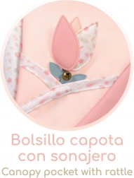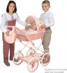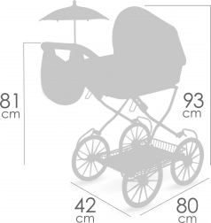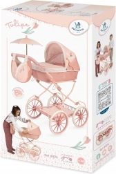 Mit dabei sind eine stylische Tasche in Tulpenform, ein klappbarer Sonnenschirm und eine weiche Matratze für die Puppe. Eine Ablagetasche am Verdeck, eine Verdeckabdeckung mit Druckknöpfen und ein geräumiger Korb unter dem Wagen fehlen ebenfalls nicht. Große Speichenräder und Federn ermöglichen sanftes Schaukeln und eine stabile Fahrt.