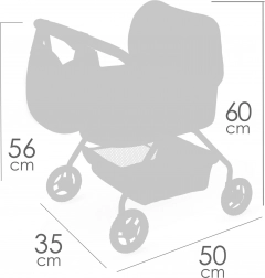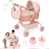Dank der leichten und stabilen Konstruktion aus Metall und Kunststoff lässt sich der Wagen selbst von den Kleinsten mühelos schieben. Mit dabei sind Matratze, Aufbewahrungskorb und eine Tasche am Verdeck mit Stofftulpe und Glöckchen für noch mehr Spielspaß.