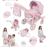 Dieser stilvolle Puppenwagen im zarten Sophie-Design erfreut jede kleine Mama. Er kombiniert praktische Funktionen mit schönen Details – die hellrosa Töne werden von grauen und weißen Spitzen sowie Schleifen ergänzt, die den romantischen Look unterstreichen. Dank der klappbaren Konstruktion ist er leicht zu transportieren und zu verstauen.