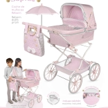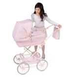 Der stilvolle Puppenwagen aus der zarten Sophie-Kollektion überzeugt mit hochwertiger Verarbeitung und romantischen Details in Rosa. Dank der höhenverstellbaren Schiebestange in 6 Positionen (65–90 cm) passt er sich perfekt auch größeren Kindern an und wächst mit ihnen mit. Die Federn im Fahrgestell ermöglichen ein angenehmes Wiegen, während die großen Speichenräder Stabilität und eine ruhige Fahrt gewährleisten.