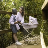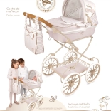 Die gepolsterte Wanne, das klappbare Verdeck und die Druckknopf-Abdeckung halten die Puppe sicher und gemütlich. Der Stil wird durch die abnehmbare Tasche im harmonierenden Design abgerundet.