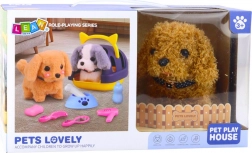 Im Set ist alles enthalten, was man zur Pflege des Haustiers braucht: Bürste, Kamm, Napf mit Knochen, Fläschchen und Föhn. Kinder können so die tägliche Pflege-Routine üben und dadurch Empathie, Verantwortungsbewusstsein sowie die Feinmotorik entwickeln.