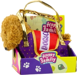 Das Spielzeug besteht aus weichem, angenehmem und kindersicherem Material. Die bunte Tasche mit dekorativen Öhrchen und der kuschelige Hund bilden ein Set, das jedes Kind erfreut und kreatives Spielen und Fürsorge unterstützt.