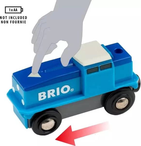 Die robuste Ausführung im blau‑weißen Design passt perfekt zu jeder BRIO World Eisenbahn und zieht mühelos schwere Waggons und Ladungen. Ein idealer Zusatz zum Ausbau von Holzeisenbahnen und für endlose Stunden kreativen Spielens.
