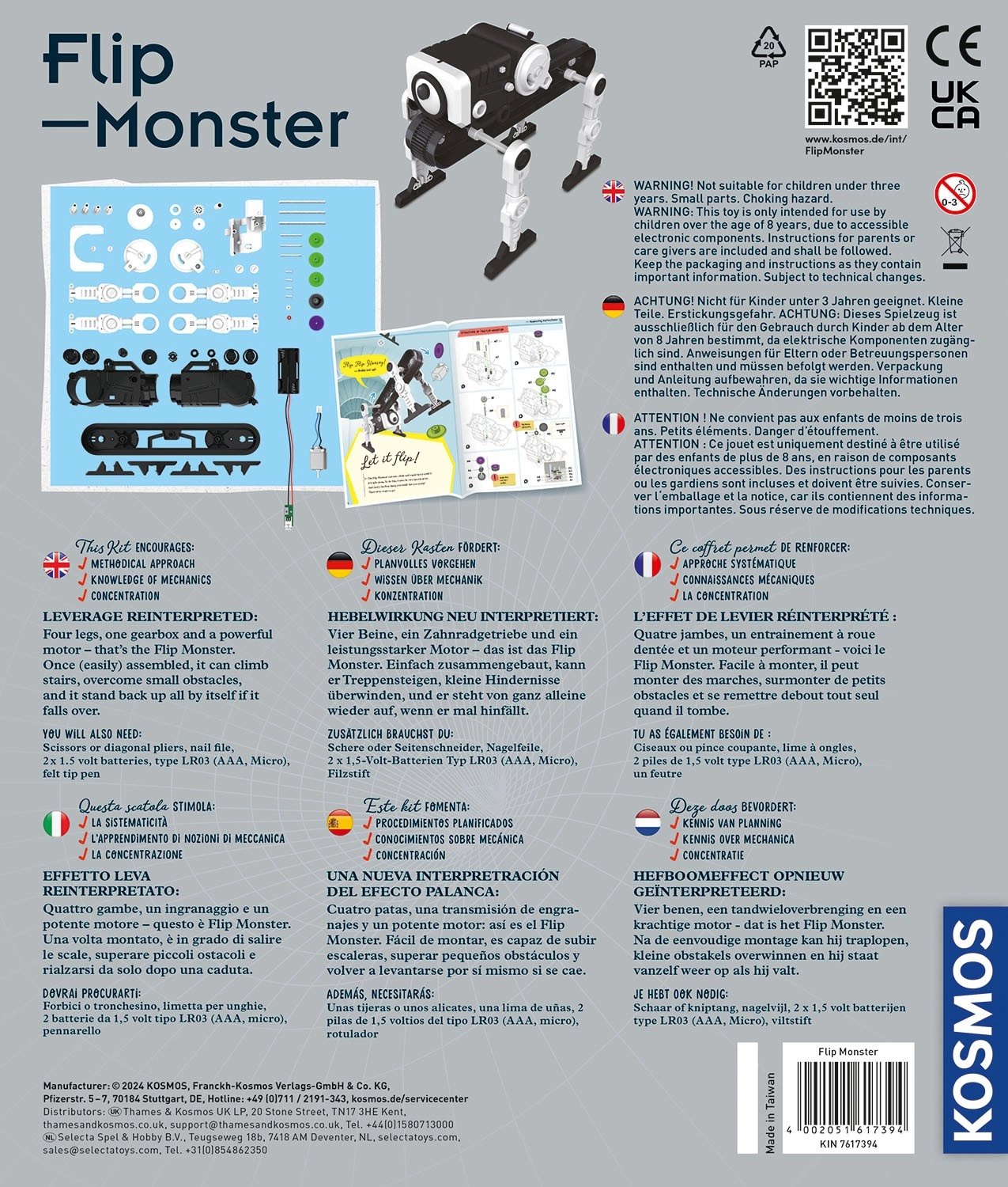 Flip Monster ist ein kreativer Robotik-Baukasten, der Geschicklichkeit, logisches Denken und das Interesse an Technik fördert. Dank der cleveren Konstruktion kann sich der Roboter selbst in die richtige Position drehen, überwindet kleinere Hindernisse und meistert sogar Treppen. Der Zusammenbau ist intuitiv und auch für Einsteiger geeignet.