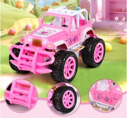 Das stylische rosa RC-Geländewagen für Kinder verbindet ein attraktives Design mit dynamischem Fahrspaß. Dank der einfachen Fernbedienung lernen Kinder schnell, vorwärts und rückwärts zu fahren sowie zu lenken, und fördern dabei Feinmotorik und logisches Denken. Lichteffekte machen die Fahrt realistischer und noch unterhaltsamer.