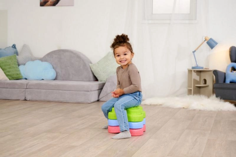 Das HEPPY-Set aus Balance-Steinen verwandelt jeden Raum in einen spielerischen Sinnesparcours. Fünf Stück in kräftigen Farben (Rot, Blau, Grün, Orange, Gelb) motivieren Kinder zum Hüpfen, Überspringen und Bauen – und stärken ganz natürlich Stabilität, Koordination und Bewegungssicherheit.