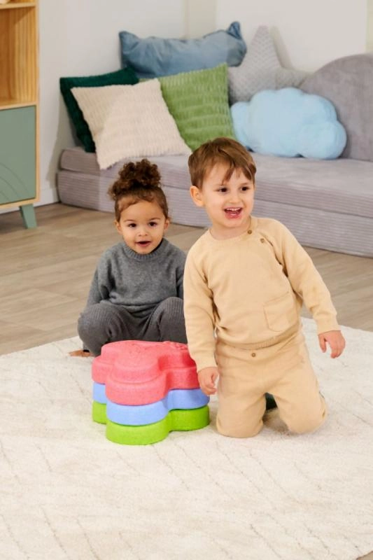 Jeder Stein trägt bis zu 120 kg, hat eine rutschfeste Oberfläche und ist geeignet für Kleinkinder ab 12 Monaten sowie ältere Kinder. Leicht zu reinigen, speichel- und schweißbeständig.