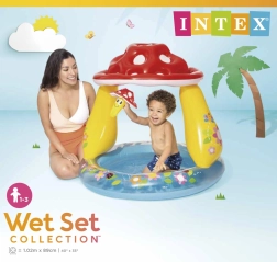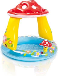 Aus robustem PVC gefertigt, bietet das Planschbecken Schutz vor Beschädigungen und sicheres Spiel. Das Pilzdach schützt vor Sonneneinstrahlung und bietet Kindern angenehmen Schatten.