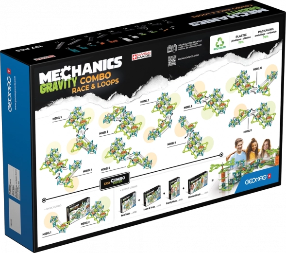 GEOMAG Mechanics Gravity Combo ist eine clevere Murmelbahn, in der Schwerkraft und Magnetismus die Hauptrollen spielen. Bauen Sie vielfältige Strecken, verfolgen Sie die Bewegung von Stahlkugeln und experimentieren Sie mit Übersetzungen, Auslösern und der Steuerung des Kugelflusses. Jeder Umbau bringt neue Herausforderungen und Freude am Entdecken.