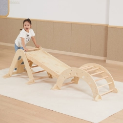 Diese beidseitige Platte ist für vielseitige Bewegung und sicheres Spielen im Innenbereich konzipiert. Die glatte Seite eignet sich ideal zum Rutschen oder als stabile Balancierbrücke, während die Seite mit Griffen Kinder zum Klettern und Überwinden neuer Herausforderungen anregt. Hochwertiges Buchenholz und Sperrholz gewährleisten Festigkeit, Stabilität und eine lange Lebensdauer.