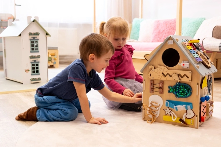 Erleben Sie ein faszinierendes Abenteuer mit dem 2Kids Spielzeug Aktivitätstafel Haus Blau. Dieses interaktive Spielhaus bietet eine Vielzahl von Aktivitäten, um die Geschicklichkeit, Neugier und insbesondere die Feinmotorik Ihres Kindes zu fördern.