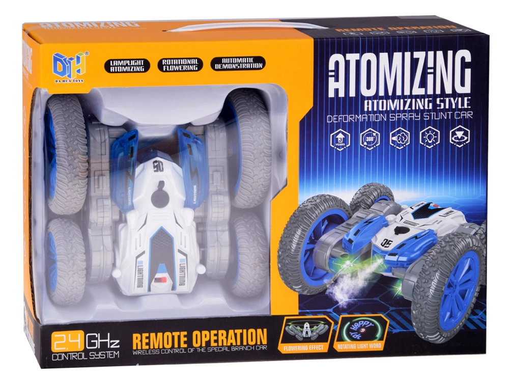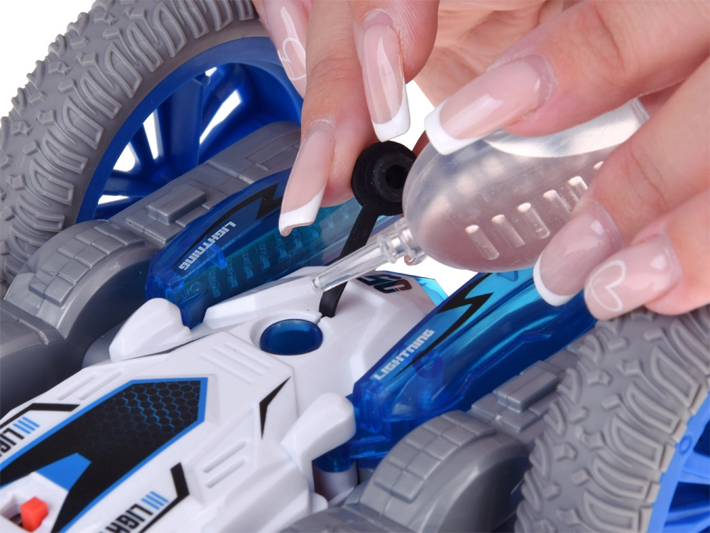 Dieses Stunt-RC-Auto ist gemacht für Adrenalin-Fahrten zu Hause und auf glatten Außenflächen. Dank der großen Räder und der wendigen Konstruktion beherrscht es Überschläge, das Fahren auf „Bauch und Rücken“, schnelle Richtungswechsel und eindrucksvolle 360°-Rotationen. Der Effekt aus beleuchtetem Wasserdampf und zweifarbigen LEDs verleiht der Fahrt eine besonders attraktive Optik.