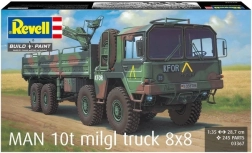 Das Kunststoffmodell der militärischen Ladeplattform MAN 10T MILGL 8x8 im Maßstab 1/35 bringt authentische Details des 8x8-Fahrwerks, der Kabine und des Laderaums. Das Modell ist zum Kleben und Lackieren vorgesehen, sodass Sie das Fahrzeug nach Ihren Vorstellungen gestalten können.