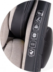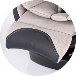 Für Reisekomfort bieten 4 Neigungspositionen, die 11-fach höhenverstellbare Kopfstütze und weiche Reduktionseinlagen inklusive integriertem 3D-Kissen zur Druckentlastung von Taille und Rücken beste Bedingungen. Der Bezug lässt sich leicht abnehmen und waschen, eine praktische Fußstütze erhöht den Komfort auf längeren Fahrten.