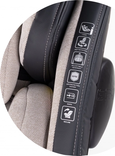 SPS-Seitenaufprallschutz, 5-Punkt-Gurt, 11 Positionen der Kopfstütze, 4 Sitzneigungen und ein 3D-Kissen zur Druckentlastung sorgen für Sicherheit und Komfort vom Baby bis zum Schulkind.