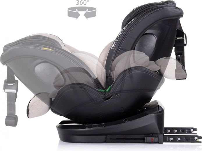 Mit einer Bewegung drehen Sie den Sitz zur Autotür, was das Anschnallen beschleunigt und Ihren Rücken schont. Ideal für die Rückwärtsrichtung und das spätere Vorwärtsfahren.