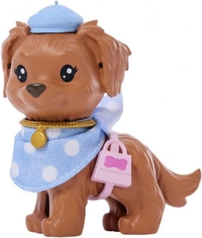 Die Puppe hat artikulierte Gliedmaßen für vielfältige Posen, während der Hund mit Accessoires dem Spiel eine realistische Note verleiht. Abgerundet wird der Stil durch Barette, Halsketten, Handtasche und Leine – alles auf einen modischen Pünktchen-Look abgestimmt.
