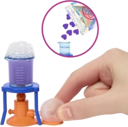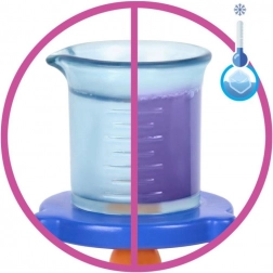 Das Set enthält ein spezielles Becherglas mit thermochromischem Effekt für Farbwechsel-Spiel sowie weitere Laborwerkzeuge, die Feinmotorik, Kreativität und Neugier fördern. Die Puppe trägt ein Batikkleid, Sneakers und einen weißen Laborkittel – bereit für jedes wissenschaftliche Abenteuer.