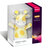 Diese kuschelweiche Plüsch-Giraffe dient als beruhigendes Nachtlicht, das das Kinderzimmer sanft erhellt. Das automatisch wechselnde Farblicht (7 Farben) schafft eine angenehme Atmosphäre für leichtes Einschlafen.