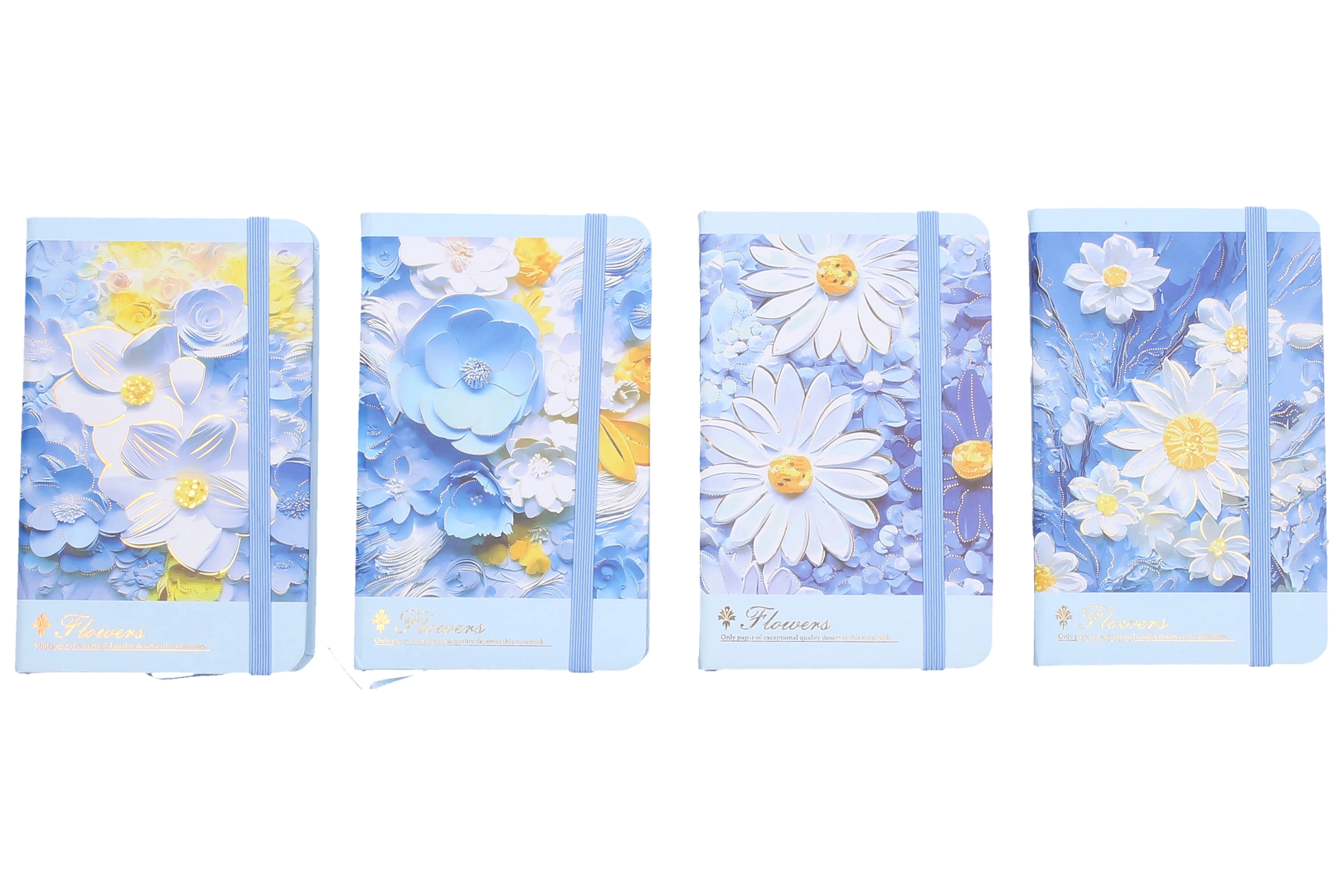 Das Design „Blumen-Mix“ bietet 4 attraktive Varianten, sodass jede und jeder fündig wird. Das Notizbuch lässt sich leicht aufschlagen und das angenehme Papier sorgt für ein schönes Schreiberlebnis mit Stift oder Bleistift.