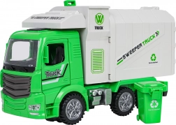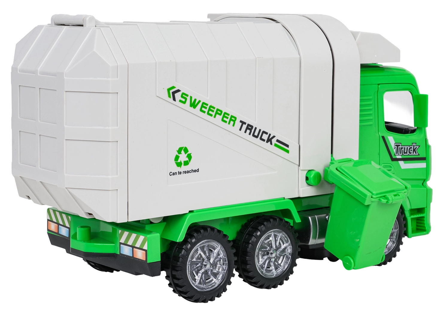 Soundeffekte wie Fahren, Bremsen, Hupe und eine fröhliche Melodie machen das Spiel besonders realistisch. Den beiliegenden Mülleimer können Sie einfach an die Seite des Fahrzeugs einhängen und den Inhalt in den Einfüllschacht kippen. Das Spielzeug wird mit 3× AA 1,5 V Batterien betrieben (nicht im Lieferumfang enthalten).