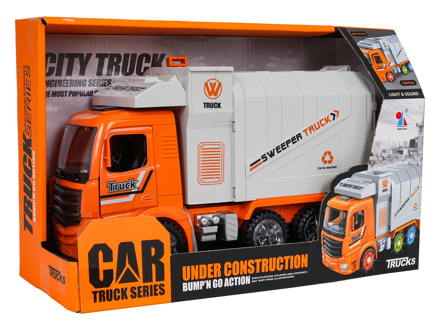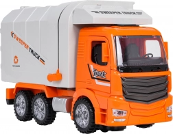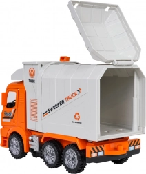 Dieses orangefarbene Müllabfuhr-Fahrzeug besteht aus hochwertigem Kunststoff mit Liebe zum Detail. Dank Licht- und Soundeffekten erleben Kinder den Stadtverkehr besonders authentisch. Die Steuerung umfasst Fahrt in alle Richtungen, öffnende Türen sowie automatisches Anheben und Absenken des Containers – ideal für kreatives, realistisches Spiel.