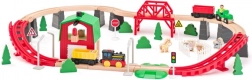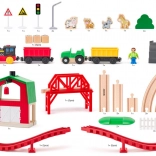 Die Holzeisenbahn „Leben auf dem Bauernhof“ bringt Kindern eine authentische Bauernhofwelt mit Zug, Schienen und thematischen Zubehörteilen näher. Kinder können eigene Geschichten erschaffen, die Hand-Auge-Koordination entwickeln und grundlegende Prinzipien von Ursache–Wirkung beim Bewegen des Zuges auf den Schienen erlernen.