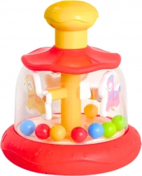 Drehen Sie die Freude mit nur einem Knopfdruck auf! Dieses interaktive Karussell setzt nach dem Drücken der oberen Taste die farbigen Teile und Kugeln in Bewegung und erzeugt einen dynamischen, wirbelnden Effekt. Das Spielzeug motiviert Kinder, Ursache und Wirkung zu entdecken, und fördert ihre natürliche Neugier.