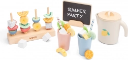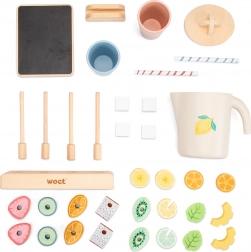 Dieses fröhliche Holz-Spielset bietet alles, was Kinder für die Zubereitung von Limonade und fruchtigen Leckereien brauchen. Einfach den Becher füllen, Obstscheiben hinzufügen, mit einem Strohhalm dekorieren – und das Servieren kann beginnen. Kinder können verschiedene Kombinationen mischen, eigene Rezepte erfinden und ihrer Fantasie beim Spielen von Picknick oder Imbissstand freien Lauf lassen.