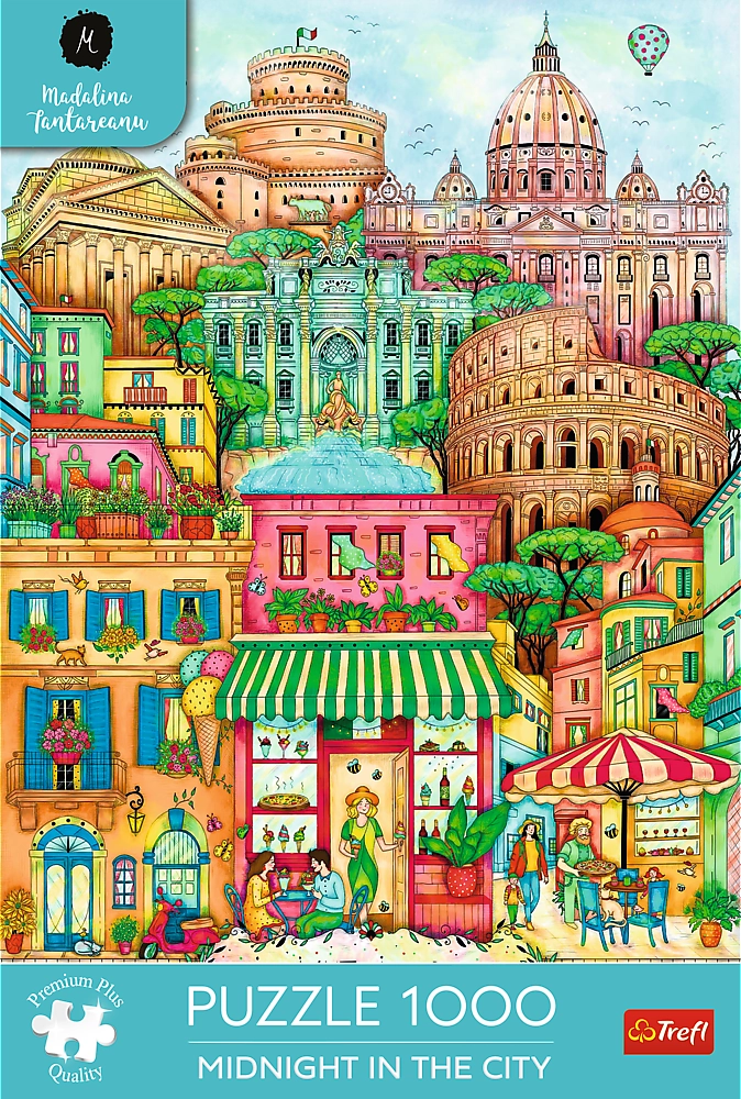 Genießen Sie hochwertiges und entspanntes Puzzeln mit TREFL Premium Plus – das Motiv Mitternacht in Rom bringt die romantische Atmosphäre der historischen Stadt bei Nacht zu Ihnen nach Hause. Dank der überdurchschnittlichen Stärke und Stabilität des Kartons bleiben zusammengesetzte Bereiche gut zusammen und lassen sich leicht versetzen.