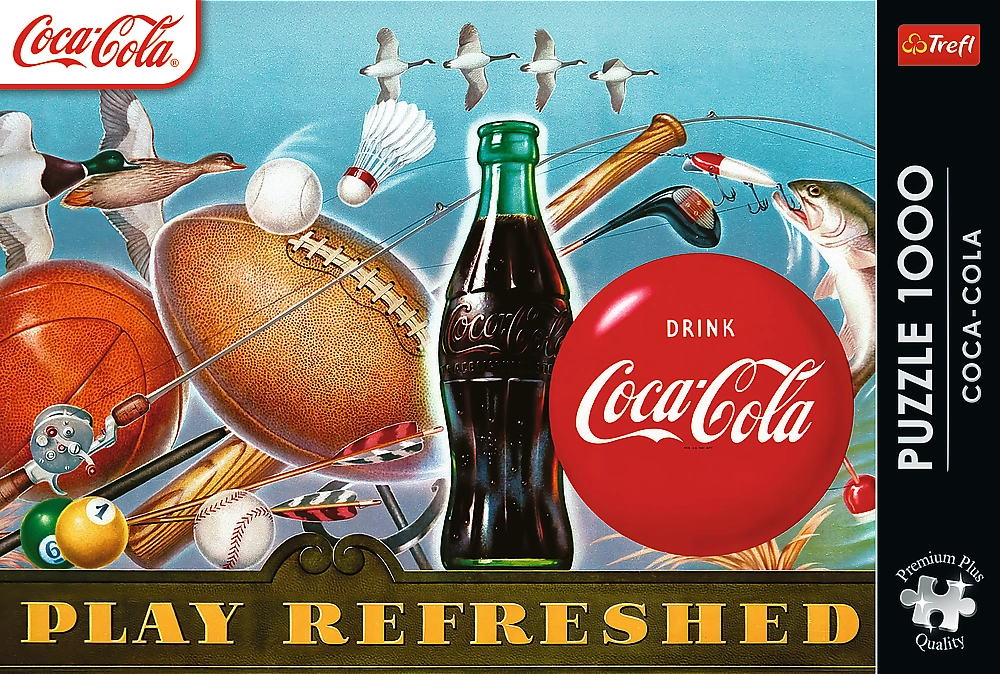 Die Premium-Serie TREFL Premium Plus bietet ein außergewöhnliches Puzzle-Erlebnis. Die Teile haben einzigartige Formen, die nur dort exakt passen, wo sie hingehören, und das COCA-COLA-Motiv kommt in lebendigen Farben zur Geltung. Dank der robusten Pappe lassen sich zusammengesetzte Bereiche leicht transportieren, ohne dass sie auseinanderfallen.