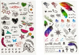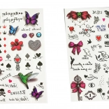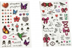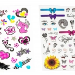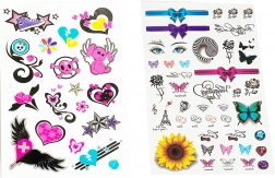 Entdecken Sie die bunte Welt temporärer Tattoos für Mädchen. Auf jedem Bogen finden Sie Dutzende niedlicher Motive in verschiedenen Größen – von Schmetterlingen und Blumen bis hin zu Herzchen, Schleifchen und Sternchen. Dank der einfachen Anwendung können sie auch Kinder unter Aufsicht von Erwachsenen problemlos anbringen. Die Tattoos sind ideal für Feiern, Karneval, Partytüten und als kreative Wochenenddeko.