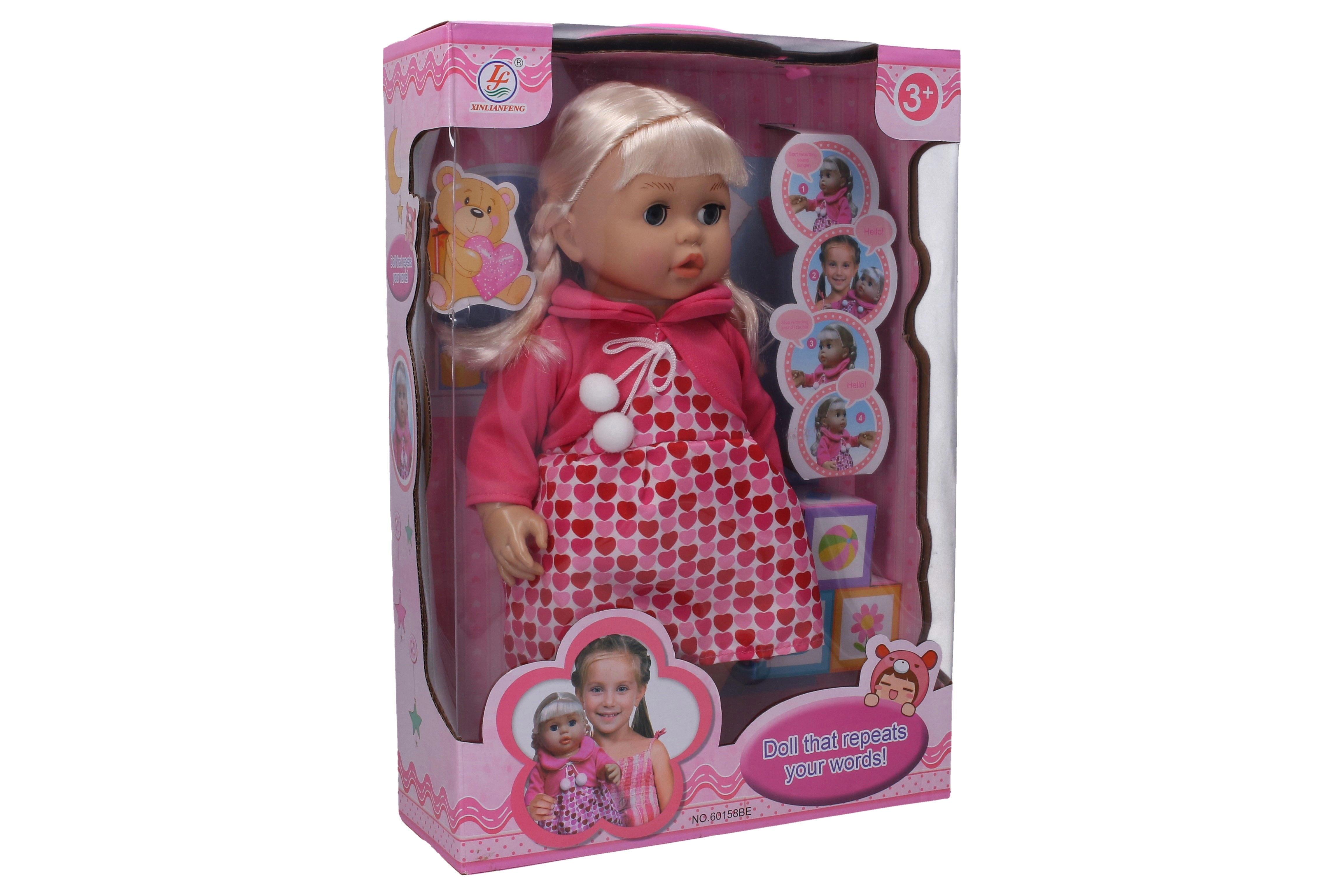 Diese interaktive Puppe bringt Kindern viel Lachen und Lernen. Durch Drücken der rechten Hand ertönt ein Signal und die Puppe beginnt mit der Aufnahme – sprechen Sie einfach in Richtung ihres Mundes. Durch erneutes Drücken der rechten Hand beenden Sie die Aufnahme. Mit einem Druck auf die linke Hand spielt die Puppe die Aufnahme ab. Die einfache Bedienung meistern auch jüngere Kinder.