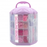 Dank der durchdachten Anordnung lassen sich die Perlendöschen vertikal direkt am Organizer platzieren, was für hervorragende Übersicht und eine schnelle Farbauswahl sorgt. Fertige Kreationen verstauen Sie bequem im dafür vorgesehenen Bereich und dank des Griffs nehmen Sie das gesamte Set mühelos mit.